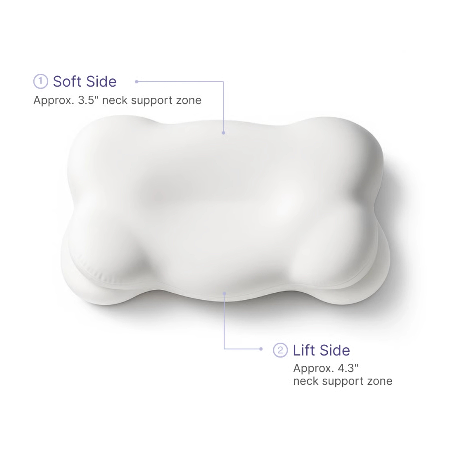 Softer and lower, this side works best for back and stomach sleepers or those who prefer a more relaxed head position and minimal elevation.